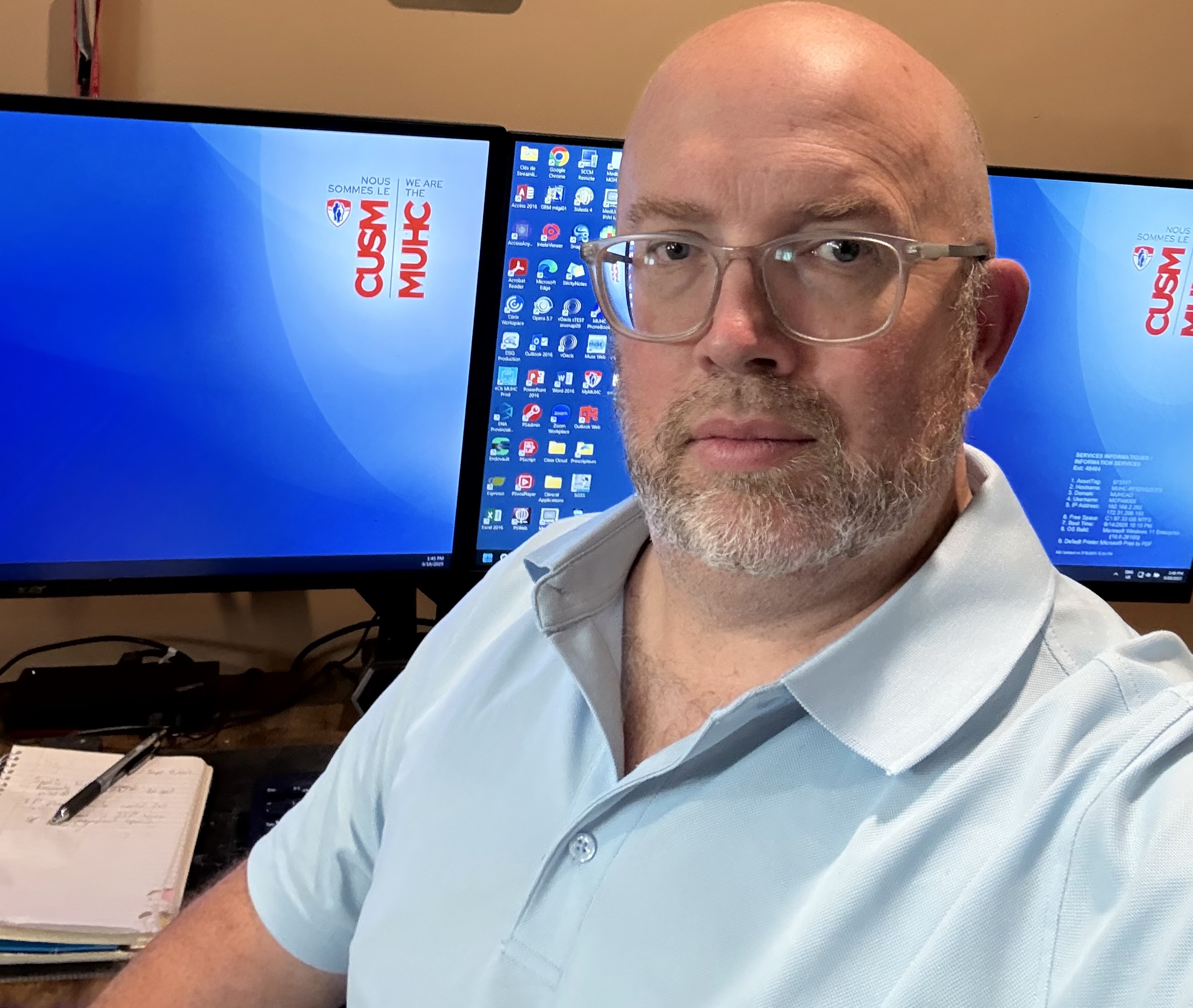 Analyste des applications cliniques à la Direction des ressources informationnelles et de la transformation numérique (DRITN), Patrick McClintock est membre d'une petite équipe qui aide à coordonner l’implantation de nouveaux systèmes au sein du CUSM. Ils doivent faire le lien entre les besoins cliniques et les outils numériques.